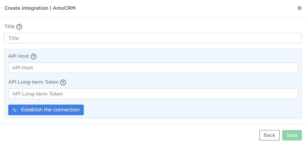 Deal name in Amo — enter the name that will be assigned to new deals in AmoCRM. It may be the same for all deals or generated using shortcuts (variables).