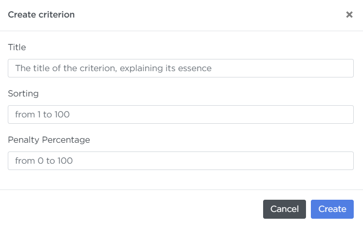 - Penalty percentage — the penalty applied when an error is recorded for this criterion,