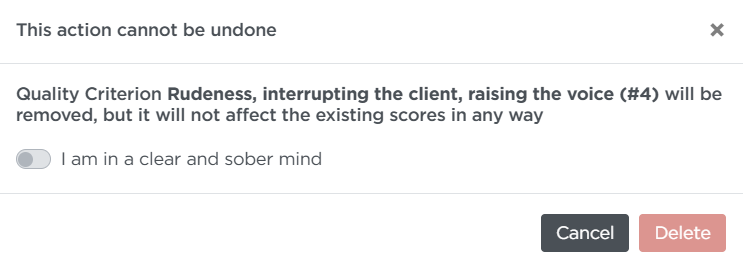 When a criterion is deleted, it disappears from the list but remains in already saved evaluation results.