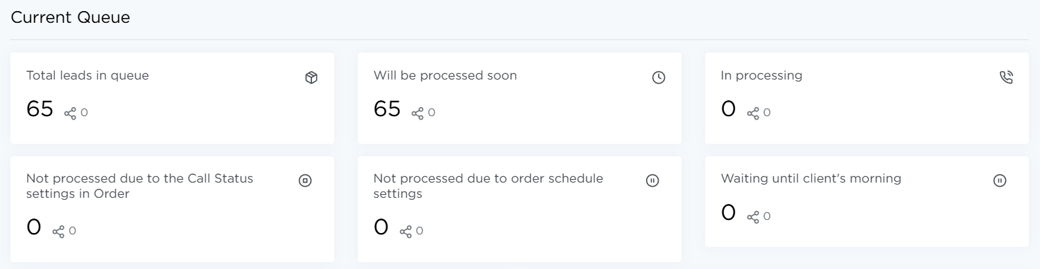 This block shows the current state of the lead queue and helps you quickly understand why some leads aren’t being processed. It includes these metrics: