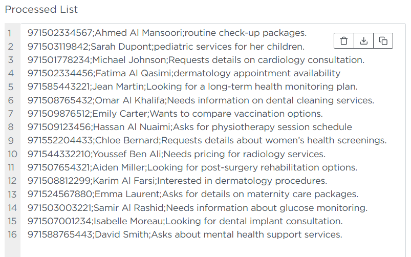 The final processed list will appear in the Processed List field.Note
