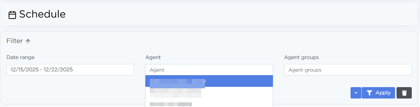 To view operators’ schedules, open Schedule from the left menu. Here you can: