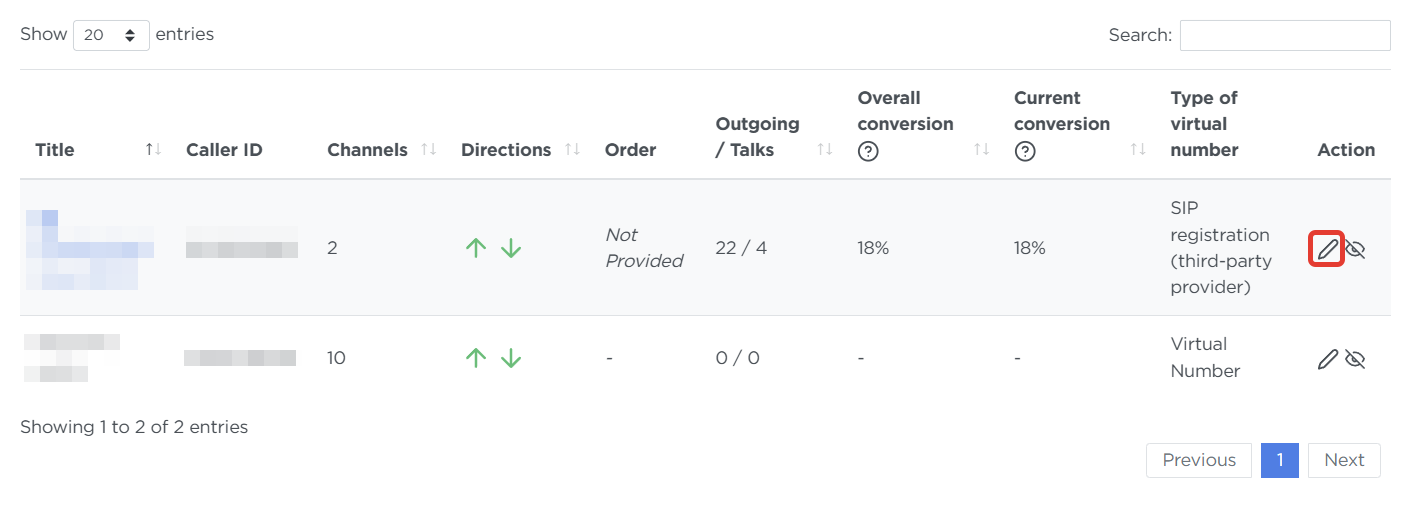 Edit an existing number by clicking the pencil icon: