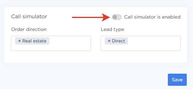Scroll to the Call simulator section and switch Call simulator is enabled to ON.