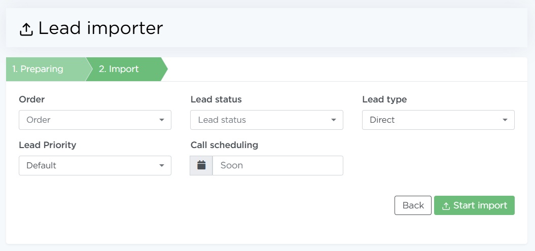 - Lead status — the status that will be assigned to all imported leads.