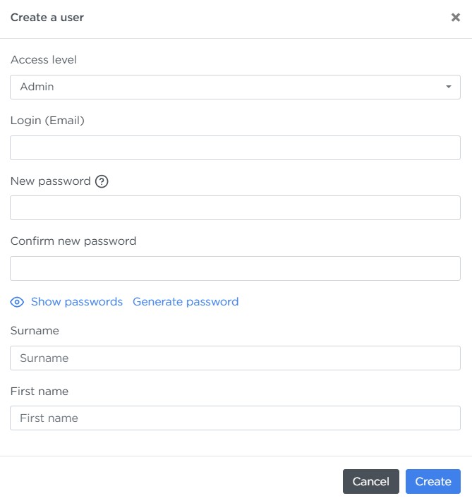 - New password — can be generated automatically.