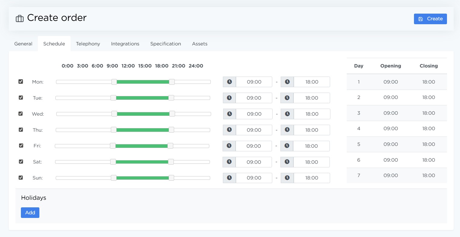 An Order is the main entity in Liner. It brings together settings for calls, leads, scripts, and operators. All call and lead-processing rules are configured here.