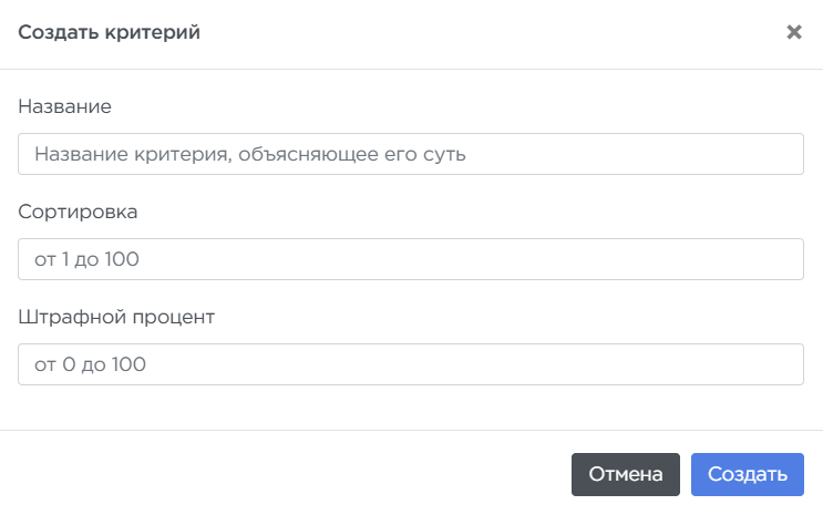 - Сортировка — позиция критерия в списке в интерфейсе оценки,