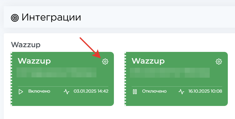 Включайте и отключайте существующие интеграции — нажмите шестерёнку, переведите ползунок Активность в нужное положение и нажмите Сохранить