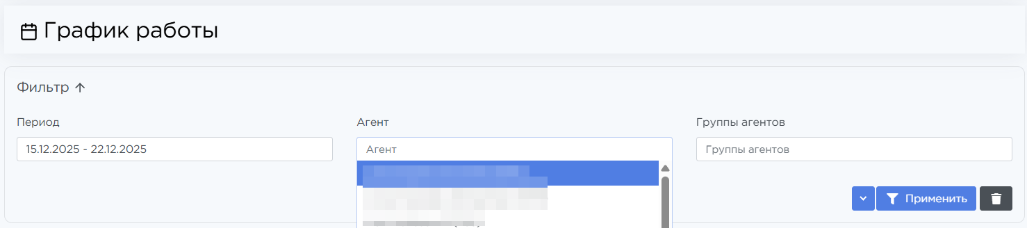 Расписание агентов по сменам