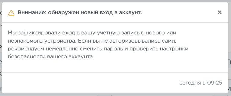 «Мы зафиксировали вход в вашу учетную запись с нового или незнакомого устройства. Если вы не авторизовывались сами, рекомендуем немедленно сменить пароль и проверить настройки безопасности вашего аккаунта».